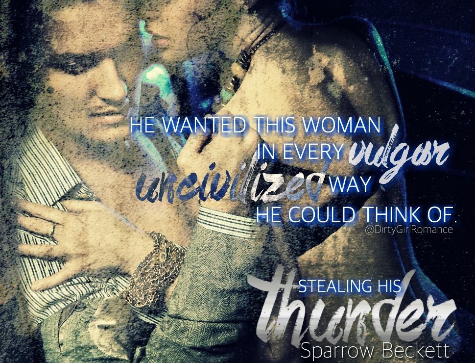 Sparrow Beckett has not disappointed with Stealing His Thunder. Amazing characters, great plot, lots of witty dialogue and sass, and steaming hot scenes with a musley tattooed man who is very good at melting panties.