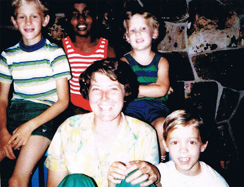 [Taj with his adopted mother and brothers in 1983, theorphankeeper.com.]