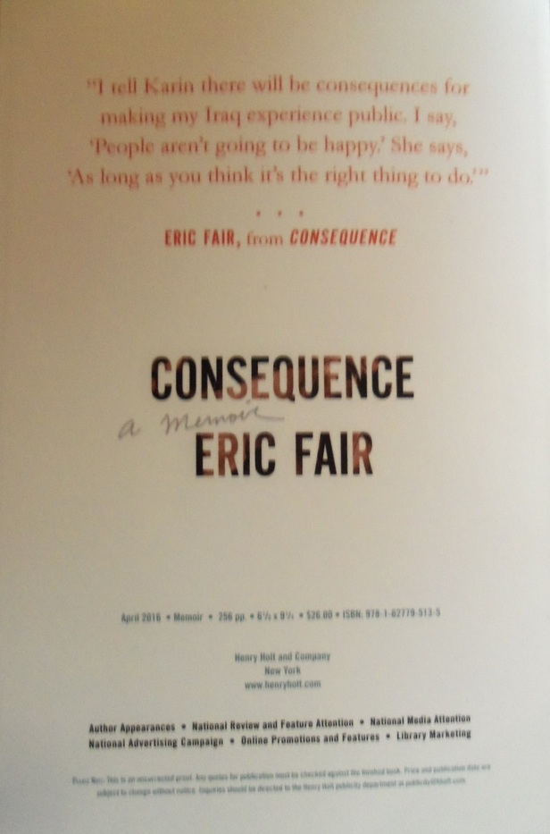 "I tell Karin there will be consequences for making my Iraq experience public. I say, 'People aren't going to be happy.' She says, 'As long as you think it's the right thing to do...' " -from Consequence