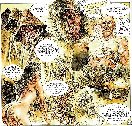 …Though that is partly because of the tone. Druuna's world is one of constant sexual threat, played for titillation; if you like that kind of thing, and no judgement, I know there are plenty who do, then this will obviously work well. For me the rapeyness is fatally offputting, and I find myself latching on to the brief moments of sympathy with our heroine with something close to desperation.
