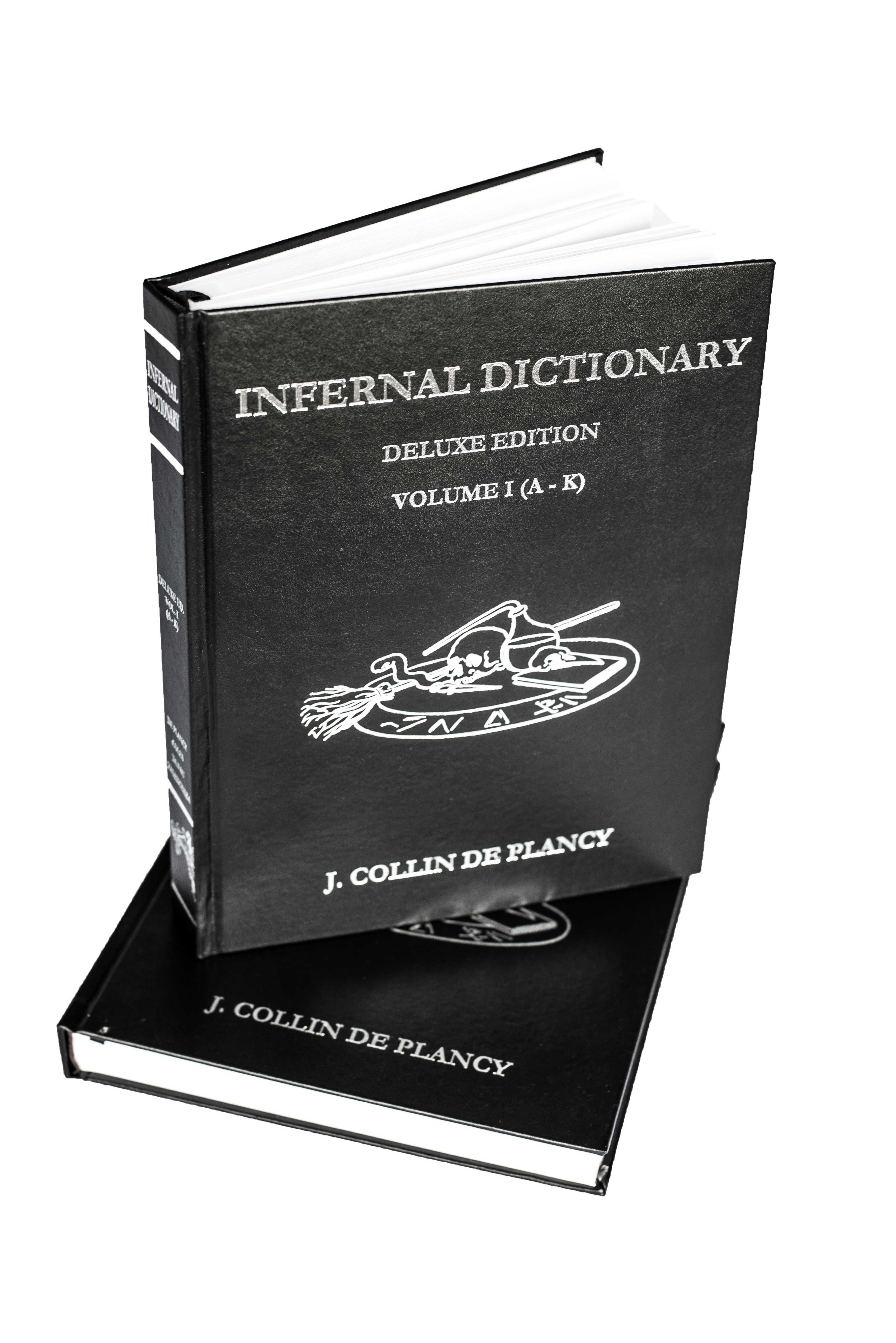 This handsome two volume box set is the first English translation of J. Collin de Plancy's Infernal Dictionary (6th edition, 1863). This enhanced translation of de Plancy's encyclopedia of occult, superstition and theology includes digitally enhanced reproductions of the original 19th century woodcuts, brand new artwork including dozens of full-color portraits reimagining several infernal beings, additional annotations and an English-French index of articles. This deluxe edition two volume set has been re-edited and includes a new index, ribbon bookmarks and a stylish foil stamped collector's box.