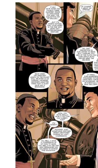 The art is distracting me a little. A bonus feature in the first volume highlighted how real models are used and I'm not sure if this is still the case (there are a lot more artists in this collection) but some of the postures seem very forced and weird and there's poor consistency. Commissioner Angotti in particular is lumped with weird face syndrome.