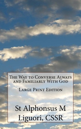 Learn the many ways to converse with God Always throughout the day and for the rest of your life as taught by a Doctor of the Church, St Alphonsus M Liguori, C.SS.R. Large Print Edition I. God wishes us to speak to Him with Confidence and Familiarity. 4 II. It is Easy and Agreeable to entertain One's Self with God. 12 III. Of what, when and how we should converse with God. 19 I. IN GENERAL 19 2. IN TRIALS 22 3. IN JOYS 28 4. AFTER A FAULT 30 5. IN DOUBTS 35 6. FOR YOUR NEIGHBOR 36 7. THE DESIRE FOR HEAVEN 38 IV. God answers the Soul that speaks to Him 40 V. Practical Summary 42 Hymn 60 82 pages.