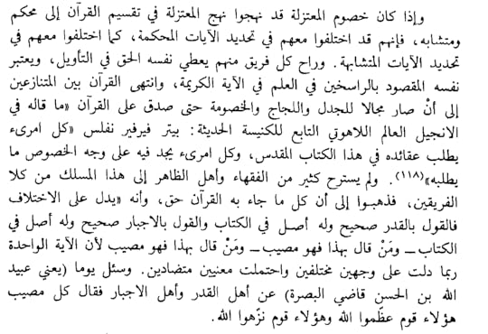 ربما كان الكتاب ليكون أسهل للقارئ لو كانت الدراسة أكبر وأعم، وليست مجرد تمهيد كل ذلك العرض المكثف كان سيهضم أيسر وأكثر نضجًا بالطبع سأعيد قراءته، هذا الكتاب خصوصًا-وكل ما يتعلق بفكر المعتزلة عمومًا- لا يجب أن يمر مرور الكرام
