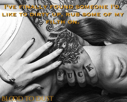 "He leaves a trail of that sticky blood he drew from my lips with every brush of his tongue. Every little thrust of his hips hammers another pin on his self-control casket."Told in dual POV, Blood to Dust is a lyrical masterpiece. The text is rich with vibrant colors craftily embedded in every single drop of phrasing. The pacing is fast and well matched with the witty dialogue! Both Prescott and Nate have a variety of demons to overcome and together they become a "force to be reckoned with". The tension and release that builds as the plot thickens left me on the edge of my seat the entire read. I was desperate for both Nate and Prescott to find their way together. The passion between Nate and Prescott was intense, and the physical connection they shared was like an inferno that would not stop.
