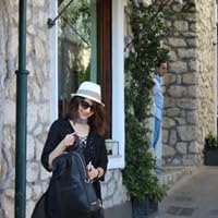 Precarious position: She is so precariously balanced on that little white ladder that I get the feeling I could blow hard and she would fall off. Despite the smile, she looks incredibly uncomfortable.