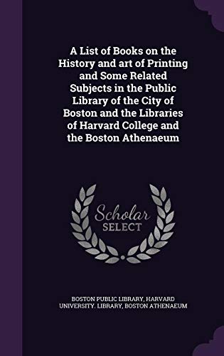 A List of Books on the History and art of Printing and Some Related Subjects in the Public Library of the City of Boston and the Libraries of Harvard College and the Boston Athenaeum