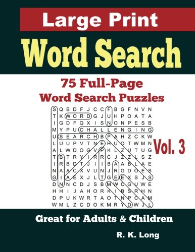 Enjoy keeping your mind active with the challenging and stimulating activity of solving word search puzzles in this easier-to-read large print format. - Inside you will find 75 word searches in format of one-page per puzzle with a list of 20 words shown at the bottom of each puzzle. - Grid sizes of puzzles are 17x14. - Puzzles printed in extra-large font (20-point size type) in this 8-1/2 x 11 page-size book. - Each puzzle references the specific page on which to find the solution in back of the book, making it easy to find the answer page.