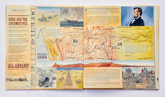 The illustrations were absolutely fabulous, however the story was severely lacking. Where are the lines about the Native Americans who lost there land, livelihoods, and ways of life due to the railroad? Where are the lines about the many immigrants especially the Chinese who worked to actually build the railroad? This book should have been shortened to a picture book and then maybe the lack of information would be more understandable; excusable no, understandable maybe.