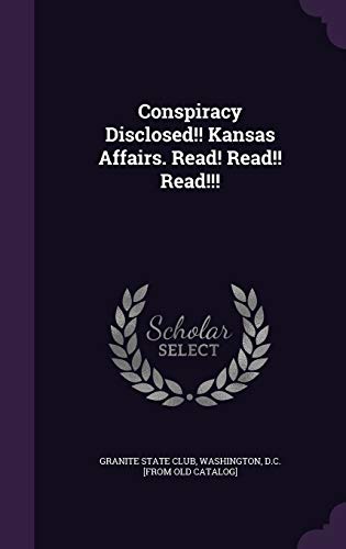Conspiracy Disclosed!! Kansas Affairs. Read! Read!! Read!!!