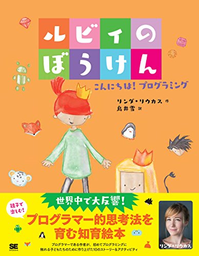 Japanese edition of Hello Ruby: Adventures in Coding by Linda Liukas. Ruby is an energetic girl who loves to do big things, ask lots of questions, and looks and organizes things just like computers do. This book is an incredibly clever way of teaching the concepts of computer programming without the need for a computer! Includes definitions of words for the parents to read, but children can also understand with a little help from parents.