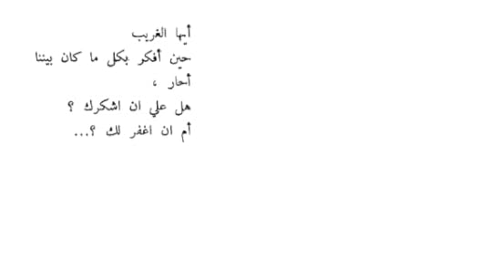 "أيها الغريب حين أفكر بكل ما كان بيننا أحار هل علي أن أشكرك؟ أم أن أغفر لك؟"