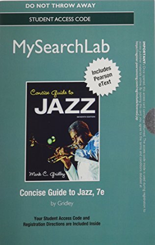 ALERT: Before you purchase, check with your instructor or review your course syllabus to ensure that you select the correct ISBN. Several versions of Pearson's MyLab & Mastering products exist for each title, including customized versions for individual schools, and registrations are not transferable. In addition, you may need a CourseID, provided by your instructor, to register for and use Pearson's MyLab & Mastering products. Packages Access codes for Pearson's MyLab & Mastering products may not be included when purchasing or renting from companies other than Pearson; check with the seller before completing your purchase. Used or rental books If you rent or purchase a used book with an access code, the access code may have been redeemed previously and you may have to purchase a new access code. Access codes Access codes that are purchased from sellers other than Pearson carry a higher risk of being either the wrong ISBN or a previously redeemed code. Check with the seller prior to purchase. -- Normal 0 false false false EN-US X-NONE X-NONE An introduction to jazz and how to listen to it Written by active jazz musician and jazz historian Mark Gridley, the Concise Guide to Jazz was created in response to students and professors asking for a clear and accurate introductory jazz text. This brief text examines how jazz originated, how it is made, what to listen for, and the major style eras. By focusing on just over fifty historical figures, Concise Guide to Jazz, seventh edition allows students to understand a broad range of jazz styles without feeling overloaded. Concise Guide to Jazz focuses on the diversity of jazz styles and serves as a basis for further jazz exploration. This text is available in a variety of formats - digital and print. Pearson offers its titles on the devices students love through Pearson's MyLab products, CourseSmart, Amazon, and more. To learn more about our programs, pricing options and customization, click the Choices tab. Learning Goals Upon completing this book, readers will be able to: Begin to appreciate how jazz is made Know how to extract the most depth of experience from listening to jazz Know who the most historically significant jazz musicians are Know why each significant musician is important Distinguish the main style eras