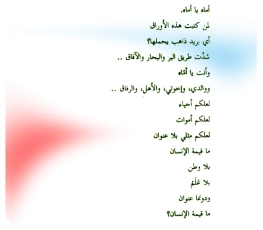 محمود في هذا الديوان يوجعني بفلسطين، والعروبة ، وحق دمي المستباح هاهناك .. وليت الشعر يخلق سيوفًا تسترجع ماكان لنا وينتهك على مرئ منا ونستنكره فقط ببضع كلمات ومطالبات نمدها للعدو لينصفنا بعدوانه !