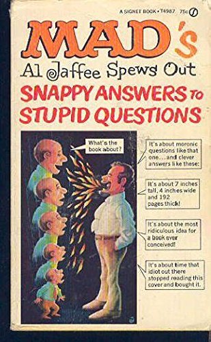 From the meticulous mind and the fastidious free hand of MAD magazine's auspicious Al Jaffee comes this quintessential quagmire of a book, the first of many a voluminous volume of "snappy answers" to "stupid questions," said inquiries being all too continually and ubiquitously apparent, despite said first appearance of this edition in 1968.