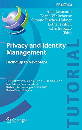 Privacy and Identity Management. Facing up to Next Steps: 11th IFIP WG 9.2, 9.5, 9.6/11.7, 11.4, 11.6/SIG 9.2.2 International Summer School, Karlstad, ... and Communication Technology, 498)