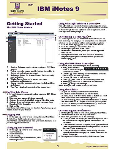 Do you need an easy-to-follow software reference right at your fingertips? Our 6 page, tri-fold guides are the answer. These quick reference guides include step by step instructions to help users to learn software features more quickly, as well as full color screen graphics to highlight important features. Quick Source reference guides also include the software programs NEW features and gives you quick access to time saving shortcuts. The IBM iNotes 9 Quick Source guide is a clear and concise tool for learning the features in iNotes. This guide include tips and instructions on many topics, including Using Ultra-light Mode on a Device, Using the IBM iNotes Banner, Customizing a Home Page and Navigating Mail. It also includes Changing Meeting Time with the Dynamic Scheduler, Canceling an Email, Enabling iNotes Search, and Enabling Out of Office Mail!