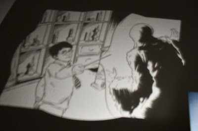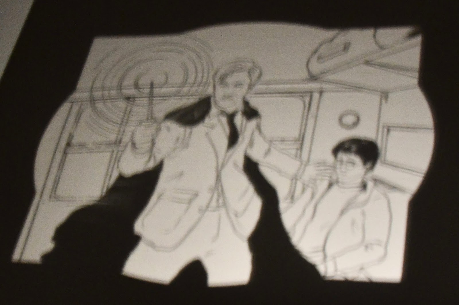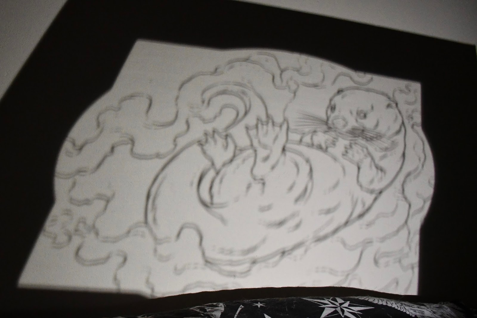 * ABOUT HOW IT WORKS IN PRACTICE: I found that the success of the projection depended on which torch or light I was using. Some LED torches weren't strong enough and only produced a very fuzzy faint image, whereas very strong lamps I used were much better at producing a strong, bold projection. I found that the further I held the page from the light source, and the closer to the wall I held the page, the clearer the image was.