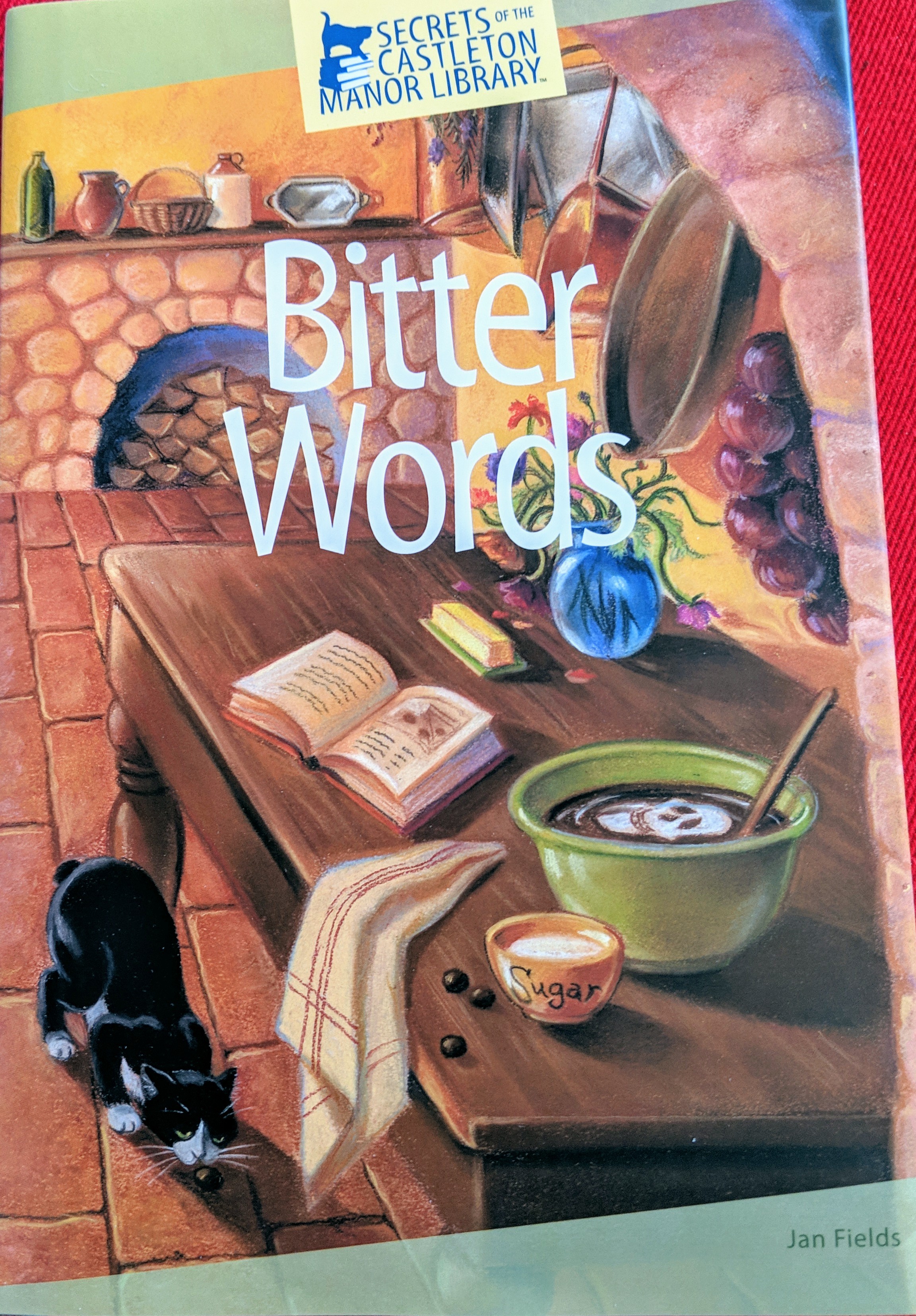 I just finished "Bitter Words" by Jan Fields and it was great! It is the 2nd book in the Mystery of Castleton Manor Library series that is written by different authors but with the same cast of characters in Lighthouse Bay on Cape Cod: Faith, the Librarian Watson, her cat Brooke, her friend and chef Wolfe, owner of the Manor Marlene, Director of the Manor's literary retreats Sugar Worthington, special guest who is a reality star chef and writing a cookbook