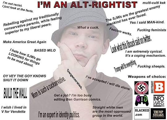 One of the things I found interesting is that according to Richard Spencer, one of the "founders" and most prominent members of the alt-right, the typical member of the alt-right is "someone who is thirty years old, who is a tech professional, who is an atheist, and who lives on one of the coasts."