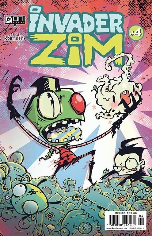 Silly issue where the Tallest send Zim their trash and trick him into thinking the giant Cheeto is a weapon he has to charge by hitting humans with it. Cute bits where he disguises the poof as a baby or Gir watches sunshiney holographic cartoons. Miss Bitters makes an appearance as well as an adorable munching squirrel. Great Zimmy wordplay.