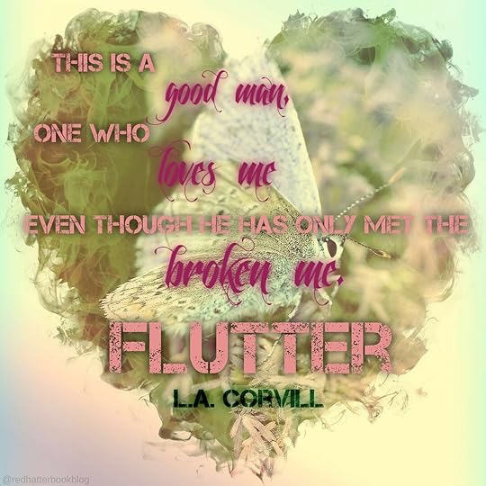 Holy Hell this blurb didn't come close to doing the story justice, and Flutter brought me to my knees. So since my high emotions are running rampant, I'm not going to try and expound, instead, just going to describe what I felt while reading it. First of all, I've never read L.A. Corvill, and boy what a story to start out with! Her writing style has a huge TALENT in all caps written all over it, as she absolutely gutted me. Like snot slinging, can't talk, and swollen eyes from the flood, gutted me. As I sit here and type up this review, I feel my eyes threaten to leak again. And it's not all sad, as it's a realistic look at second chances at love, after life serves up the unthinkable. And the characters became more than just people in a book, they were like my real friends, and forever tattooed on my heart. I'm going to keep this short, as in all of my dramatics, because I'm an emotional wreck, I don't want to give anything away. Just know that I HIGHLY HIGHLY HIGHLY RECOMMEND this amazing story with a box of tissues!