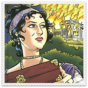 This graphic novel tells about the efforts Dolley Madison made to save priceless papers, artwork, books and other treasured items from the British Invasion of Washington DC during the war of 1812 (the actual event took place on 24 August 1814). It's a good entry in Graphic Library's Graphic History series.