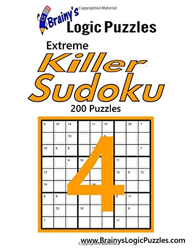 Killer Sudoku is a fun and challenging variant on classic Sudoku puzzles. To complete a puzzle you must fill the board with numbers that obey traditional Sudoku rules AND make each outlined cage shows the sum of the number within that cage. The same number cannot appear more than once in a cage. The grid is blank, but these rules give you all the information you need to solve the puzzle! Volume #4 This book contains 200 Extreme puzzles, 4 per page. We are sure you will find these puzzles offer an entertaining yet effective way to exercise your brain and keep your mind sharp. All puzzles have been checked to ensure there is only one valid answer. We never duplicate a logic puzzle in any of our books. Our books are printed on high quality 60 lb paper. Find more pencil puzzle books on Brainy's website! www.BrainysLogicPuzzles.com