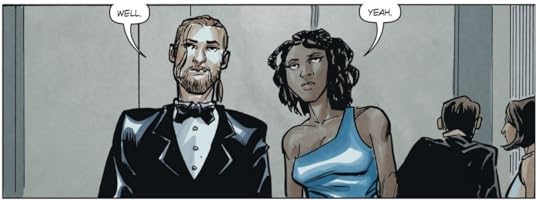 When I learned that this volume consisted of six short stories focused on side characters, coming right after the shocking climax of the previous book, I fretted. But these stories actually aren’t too bad. Yeah, not as strong as the main books, and with inconsistent art, but decent world building diversions. They even advance the main story somewhat. My favorite is the Sere Cooper story, because I like the character and because it’s gorgeously drawn by Bilquis Evely.