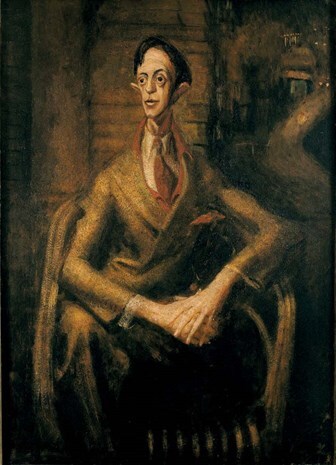 This painting is called "Mr Joshua Smith" and was the cause of a famous court case in 1944. The Archibald Prize is an Australian portraiture art prize for painting, and "Mr Joshua Smith" by William Dobell was the award winner in 1943. Two members of the Royal Art Society, a society that author of this monograph James Gleeson called “reactionary”, had taken action in the NSW Supreme Court that it was not a true portrait under the terms and conditions of the award. The judge rightfully threw the case out.