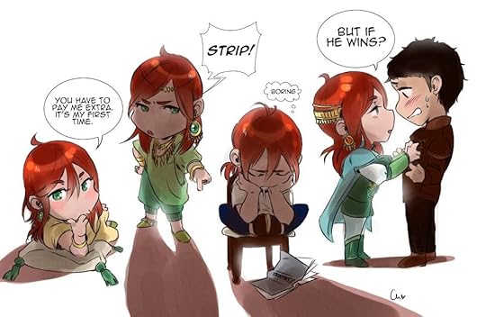 ‘What a terrible gift. I’d much rather have jewelry,’ said Ancel, wrinkling his nose. ‘Or clothes. Even the horse was better.’