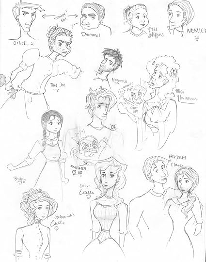 I haven’t found a very satisfying adaptation of this book, but am still curious how these characters should look like. Here is a sketch, it doesn’t include the main character, Pip, don’t know why.