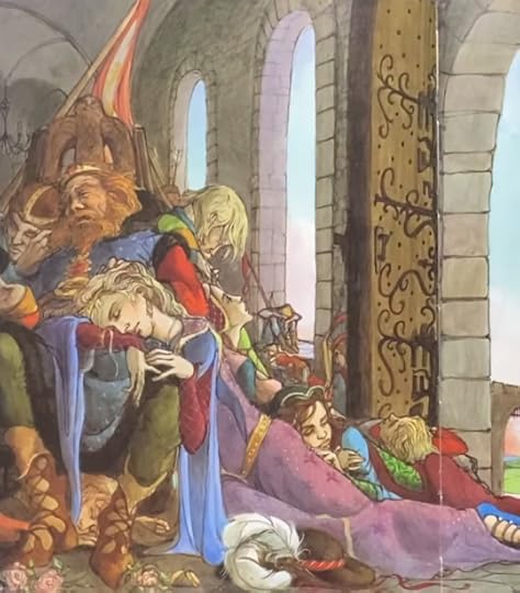 This is a retelling of the Grimm's version of Sleeping Beauty, and of the Sleeping Beauty books I've read I must say that this was at once the most grim and the most merry.
