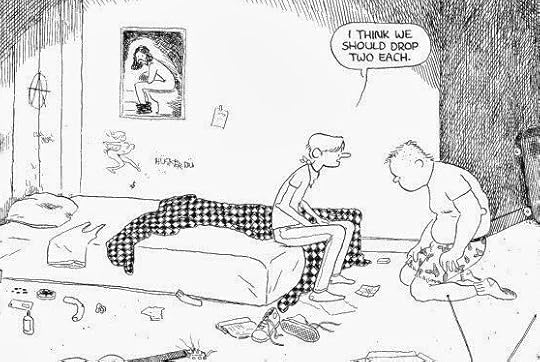 Два парня закидываются кислотой и решают поехать на море. И вот я, в общем-то, рассказал вам весь сюжет короткого комикса Чарльза Форсмана. Но у Форсмана обычно дьявол кроется в деталях, точнее даже в каком-то особом настроении юношеской тоски и редком умении двумя-тремя штрихами показать глубокий, сложный мир героев, нарисованных будто бы чересчур примитивным образом (а кислота вообще остаётся где-то на бэкграунде).
