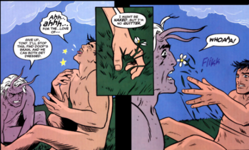Still a good series, but it had grown low on the freshness that made this series such a blast in the beginning. The Iron Man vs. Mr. Sensitive vs. a bunch of naked people issue, though, is hilarious.