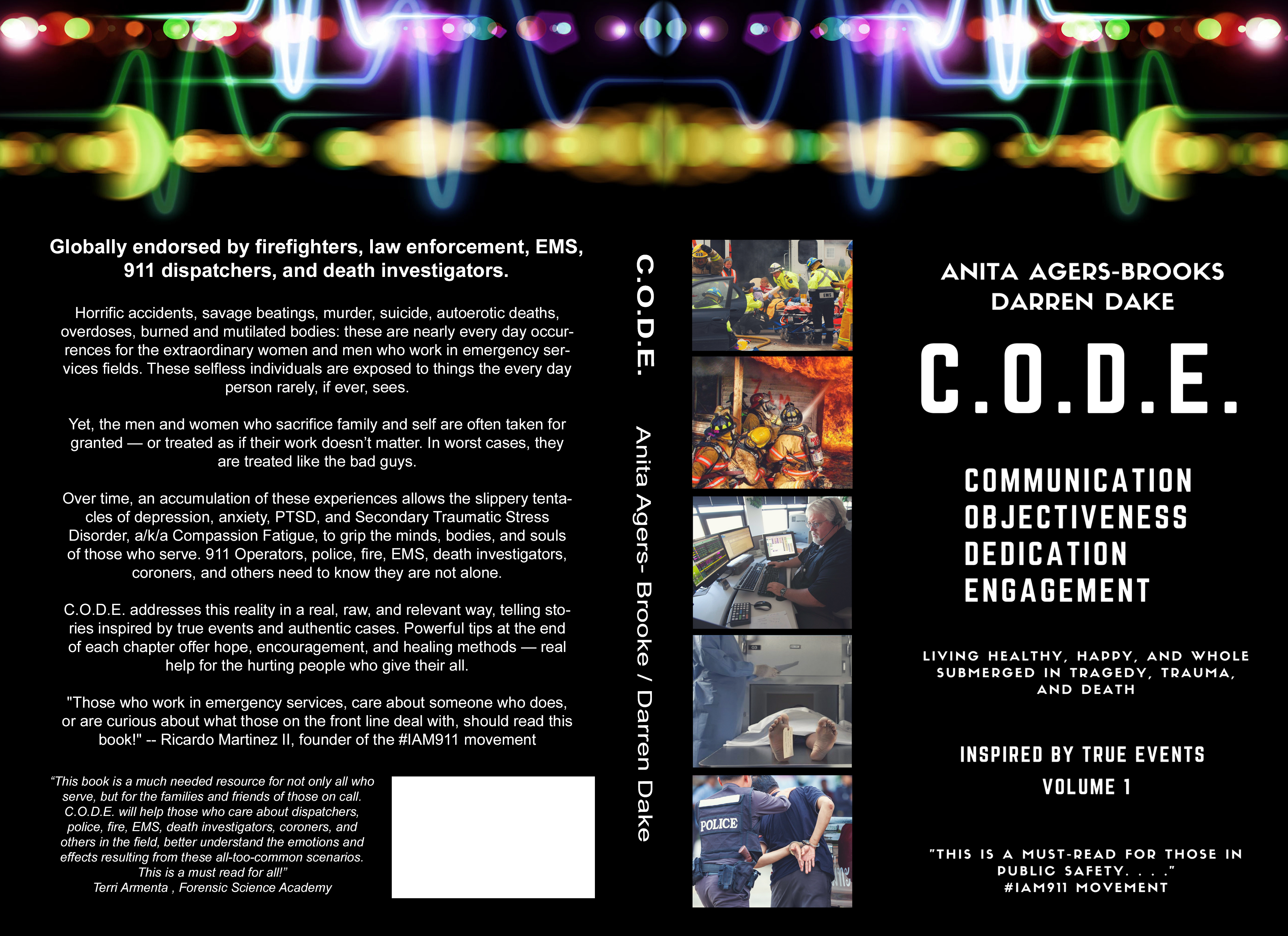 Horrific accidents, savage beatings, murder, suicide, autoerotic deaths, overdoses, burned and mutilated bodies: these are nearly every day occurrences for the extraordinary women and men who work in emergency services fields. These selfless individuals are exposed to things the everyday person rarely, if ever, sees. Yet, the men and women who sacrifice family and self-are often taken for granted - or treated as if their work doesn't matter. In worst cases, they are treated like the bad guys. Over time, an accumulation of these experiences allows the slippery tentacles of depression, anxiety, PTSD, and Secondary Traumatic Stress Disorder, a/k/a Compassion Fatigue, to grip the minds, bodies, and souls of those who serve. 911 Operators, police, fire, EMS, death investigators, coroners, and others need to know they are not alone. C.O.D.E. addresses this reality in a real, raw, and relevant way, telling stories inspired by true events and authentic cases. Powerful tips at the end of each chapter offer hope, encouragement, and healing methods - real help for the hurting people who give their all. Foreword Domestic violence, car accidents, suicide, murder. . . . You read about them in your local newspaper, online and through social media. For a time after you read the article or headline, you show emotion for those who have been hurt, but you soon move on. For you, it's over. But what about those working in public safety? Those news stories begin with, "9-1-1, what is your emergency?" From dispatch to those on the road, and to the medical examiner, a call for help can come in different forms, but the result is the same for those who respond. Eventually, it takes a toll on the soul. In reading C.O.D.E., written by Anita Agers-Brooks and Darren Dake, I revisited my thirteen years in 9-1-1 as an on the line dispatcher and supervisor. This is a must-read for those in public safety who have experienced the worst the industry has to offer and who are looking to rise above the pitfalls such as depression, PTSD, Compassion Fatigue and more. The stories of Caleb and Josie were all too real. Like Josie, I took a few calls when I stopped to think, Is this someone I know? Working in the county I grew up in, the odds were high that it was a friend or relative. In 2007, I took a call from my cousin telling me our grandmother had just passed away. My job was tough, but I loved what I did. Like Caleb and Josie, I didn't talk to anyone, and I buried my emotions. In C.O.D.E., Brooks and Dake walk you through cases based on true events. At the end of each story, they offer tips of hope, ways to stop and analyze your situation and better communicate your feelings with loved ones, so you can heal from the trauma. I found closure and healing through writing my 9-1-1 stories out on my blog, The Jabber Log, and creating, Within the Trenches, a podcast based on the experience of being a 9-1-1 dispatcher. Through this, I created #IAM911. A movement that gives a raw glimpse into the emotional stress that comes with each 9-1-1 call through the words of each dispatcher. C.O.D.E. is another crucial healing resource. Those who work in emergency services, care about someone who does or are curious about what those on the front line deal with, should read this book. -Ricardo Martinez II, host and creator of the Within the Trenches podcast. He is currently the Director of Communications at INdigital, a 9-1-1 solutions company in Indiana. In August 2016, Ricardo started the #IAM911, a movement that spread from the United States to Canada, the U.K., New Zealand and Australia. It's popularity and success has brought the Thin Gold Line into the spotlight, and has opened the eyes of millions to what 9-1-1 dispatchers deal with daily.