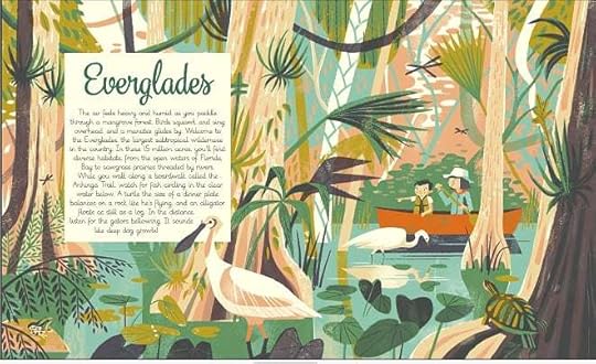 This is a beautifully illustrated book which is full of fascinating facts and little known information about of the wide variety of national parks which cover the 50 states of America. Each page is covered by an aray of exquisite pictoral representations of the particular park and the inhabitants both floral and fauna that are within it. This is a book primarily aimed at children and it is a perfect way to educate them on one of America's national treasures but is also perfect for adults who want to learn about it to and in a visually appealing way. This is book suitable for all who wish to learn about America's national parks in spectacularly designed book.