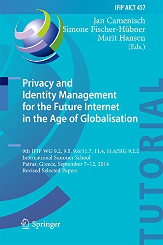 This book contains a range of keynote papers and submitted papers presented at the 9th IFIP WG 9.2, 9.5, 9.6/11.7, 11.4, 11.6/SIG 9.2.2 International Summer School, held in Patras, Greece, in September 2014. The 9 revised full papers and 3 workshop papers included in this volume were carefully selected from a total of 29 submissions and were subject to a two-step review process. In addition, the volume contains 5 invited keynote papers. The regular papers are organized in topical sections on legal privacy aspects and technical concepts, privacy by design and privacy patterns and privacy technologies and protocols.