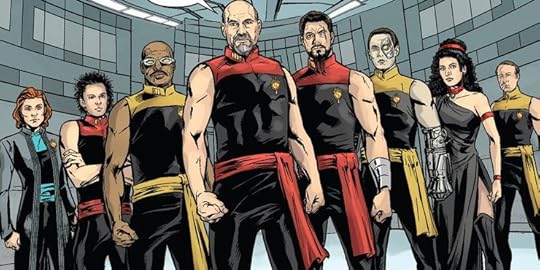 I really enjoyed this story. I found out that there are no Mirror Universe episodes in TNG so it’s nice to see what that could have looked like. I like some of the little details like the outdated uniforms that the impostors wore because they had old information to base them off. I used to dismiss the books and graphic novels since they weren’t officially canon. Since I’ve watched all but a couple seasons of all of the shows it is nice to be able to see new stories, whether they are canon or not, of some of my favorite characters since TNG is my favorite series.