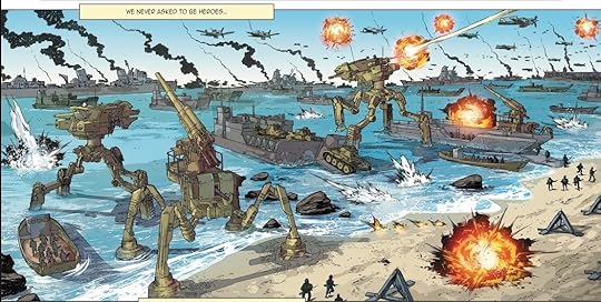 For one, the artwork of the story, which was the highlight of Volume 1, appear to be significantly watered down, and lacks the depth, richness & intensity as the original. There are a few panels which show promise, and I do appreciate the visuals of the Mechanized walkers treading the beaches in a mechapunk remake of the Invasion of Normandy. But it does fall short.