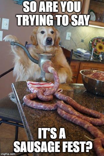 That's right, cute doggie. Hey, can you at least wear gloves while you make the sausage? I like mine hairless.
