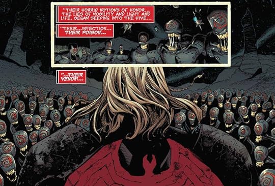 I was excited when I heard Donny Cates was taking over Venom. I thought maybe he can actually make Venom interesting. Unfortunately, I didn't care for his take at all. I was fine with the horror approach. Ryan Stegman and Frank Martin do a balls out job of making the book look creepy. There are a lot of Todd McFarlane and Greg Capullo influences to my eye. This story, however, was convoluted, half-baked and just flat out uninteresting. Eddie is having problems coexisting with his symbiote, which we just went through in the previous series by Mike Costa. Venom has to fight the god of symbiotes, Knull. Grendel from Beowulf was actually this said god's avatar. Knull is duller than a box of rocks. He's your stereotypical mad god who's evil just to be evil. To say I was severely disappointed with this is an understatement.