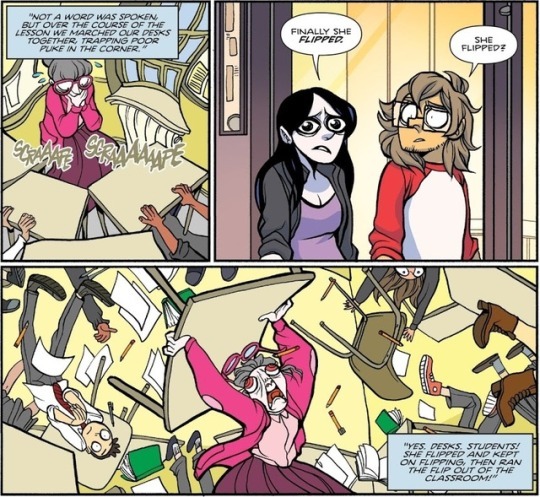 Volume 9 is still pretty tops though. Ed’s face when Esther half-jokingly suggested they live together was the funniest thing I’ve seen all year! I loved the visuals of the student vultures lusting after the girls’ former house and Ed hallucinating living with Dean for another year – artist Max Sarin absolutely kills it with the art as per ush.