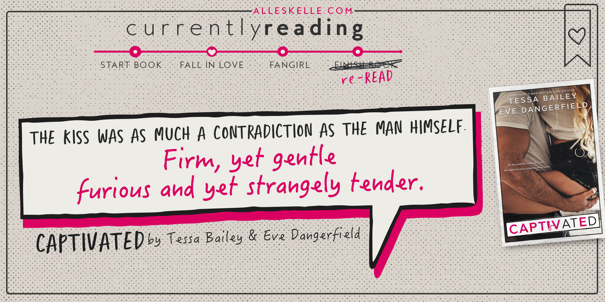 Autumn retrieved the bag and returned to him, seeming at the least second to remember their considerable height and weight difference. “Um, maybe I should find someone normal sized?”I was kinda getting into a reading slump when I started this book so it took me a little more to get invested in them than during my first read, but once I got into them, I got into them. I liked the Eve Dangerfield book I read before this one, but I know many of us (and yes, I include myself in this) know Tessa Bailey as a very hit-or-miss author, but this one's a hit for me and super underrated. If you're interested, definitely give it a try.