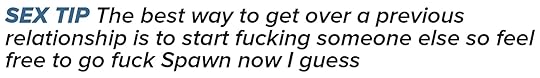 There's also very little noodling in this volume, which I appreciated. This is the crisp narrative I was introduced to in Sex Criminals Vol 1: One Weird Trick. There's also less humor, which Matt and Chip attempt to ameliorate with a goofy gag page every few issues. It falls pretty flat.