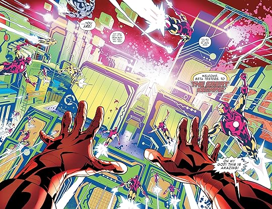 This was such a fresh breath of air to read like so many great things happen here and I love the way Slott weaves so many sub plots in and it makes for a fantastic read plus the commentary with Jocasta is so awesome, I love it and the comedy because of Andy and Amanda haha! Bendis introduced her and Slott is exploring that and it is awesome! Also there is the main plot with eSCAPE and all and that was fun plus some fun stuff building with Machine man and Controller so that will be great to read!