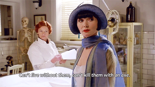 Miss Fisher carries a small lady’s handgun and smokes her gaspers like a chimney. She is living her life without any pretense or expectations from anyone. It’s her life and she’ll live it the way she wants! She’s irreverent and cynical in a delightful way – is that even possible? She’s inherited a noble title and a ton of money so naturally she spends it like it’s water and drinks cocktails in the same way. She is not ashamed of her sexual prowess flirting incessantly with all of the gorgeous men. I really shouldn’t have liked her because she’s just the opposite of me and maybe that’s why I liked her so much.