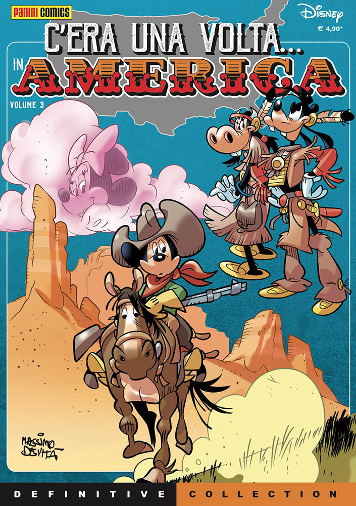 • Continua la riedizione Definitive della saga americana ideata da Giorgio Pezzin e magistralmente disegnata da Massimo De Vita: “C'era una volta... in America”. • Quattro grandi avventure: “Topolino e la via dell'Oregon”, “Topolino e la febbre dell'oro”, “Topolino e il cavallo di ferro” e “Topolino e la legge del Far West”.
