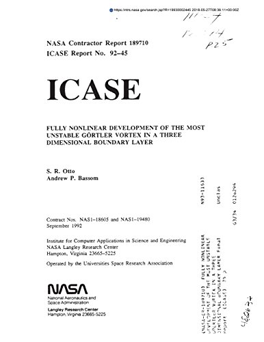 The nonlinear development is studied of the most unstable Gortler mode within a general 3-D boundary layer upon a suitably concave surface. The structure of this mode was first identified by Denier, Hall and Seddougui (1991) who demonstrated that the growth rate of this instability is O(G sup 3/5) where G is the Gortler number (taken to be large here), which is effectively a measure of the curvature of the surface. Previous researchers have described the fate of the most unstable mode within a 2-D boundary layer. Denier and Hall (1992) discussed the fully nonlinear development of the vortex in this case and showed that the nonlinearity causes a breakdown of the flow structure. The effect of crossflow and unsteadiness upon an infinitesimal unstable mode was elucidated by Bassom and Hall (1991). They demonstrated that crossflow tends to stabilize the most unstable Gortler mode, and for certain crossflow/frequency combinations the Gortler mode may be made neutrally stable. These vortex configurations naturally lend themselves to a weakly nonlinear stability analysis; work which is described in a previous article by the present author. Here we extend the ideas of Denier and Hall (1992) to the three-dimensional boundary layer problem. It is found that the numerical solution of the fully nonlinear equations is best conducted using a method which is essentially an adaption of that utilized by Denier and Hall (1992). The influence of crossflow and unsteadiness upon the breakdown of the flow is described. Otto, S. R. and Bassom, Andrew P. Unspecified Center NAS1-18605; NAS1-19480; RTOP 505-90-52-01...