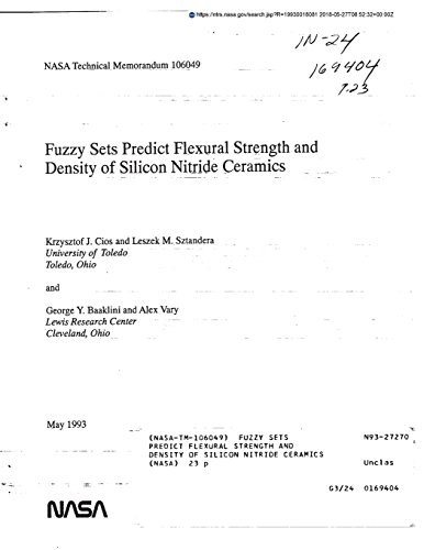 In this work, we utilize fuzzy sets theory to evaluate and make predictions of flexural strength and density of NASA 6Y silicon nitride ceramic. Processing variables of milling time, sintering time, and sintering nitrogen pressure are used as an input to the fuzzy system. Flexural strength and density are the output parameters of the system. Data from 273 Si3N4 modulus of rupture bars tested at room temperature and 135 bars tested at 1370 C are used in this study. Generalized mean operator and Hamming distance are utilized to build the fuzzy predictive model. The maximum test error for density does not exceed 3.3 percent, and for flexural strength 7.1 percent, as compared with the errors of 1.72 percent and 11.34 percent obtained by using neural networks, respectively. These results demonstrate that fuzzy sets theory can be incorporated into the process of designing materials, such as ceramics, especially for assessing more complex relationships between the processing variables and parameters, like strength, which are governed by randomness of manufacturing processes. Cios, Krzysztof J. and Sztandera, Leszek M. and Baaklini, George Y. and Vary, Alex Glenn Research Center RTOP 506-01-50...